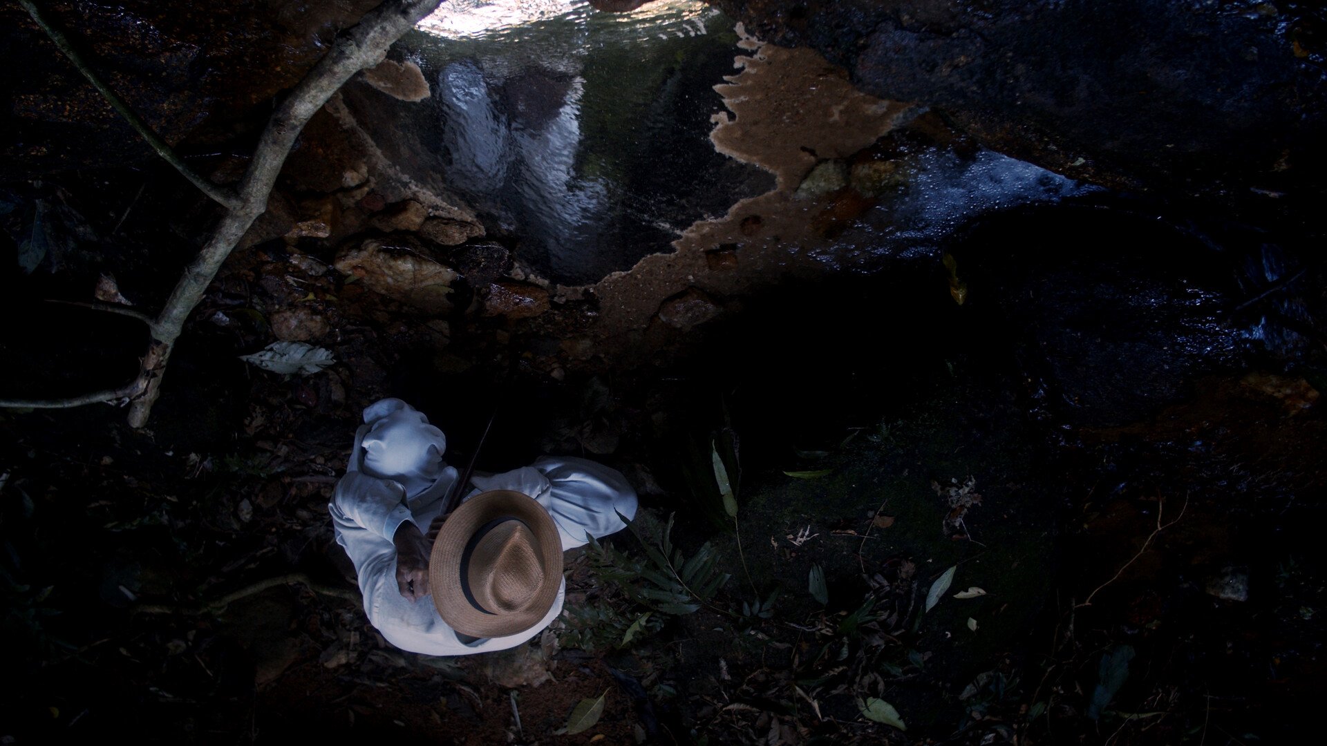 Tomando como modelo la obra pictórica del pintor finisecular del siglo XIX Antonio Parreiras, la película de Lucas Parente se sostiene sobre los huesos de la “América infeliz”, que camina sobre el osario de su propia estirpe. A través del uso de sus pinturas, bocetos, esculturas, archivos, así como de otra clase de archivos audiovisuales, e incluso registro cinematográfico reciente, se traza el camino crítico que pretende ver la pervivencia de la violencia colonial, de los mitos fundacionales que se han escrito y defendido para sostener la narrativa colonial. En esta película Parreiras vive en una especie de purgatorio producto de su propia obra de arte. Sumergido en sus paisajes, que causaron un gran escándalo durante su vida, camina por los senderos de bosques y riachuelos. Allí se mezclan sonidos metálicos, acuosos, digitales, con grandes obras de música inspiradas y alimentadas por la influencia europea, especialmente la barroca, como las composiciones de Heito Villa-Lobos. Villa-Lobos, al igual que Parreiras, se inspiró en los modelos artísticos de los europeos, pero busco reapropiárselos y asimilarlos para luego hacer un arte que ellos consideraban “autóctono”, liberador, inspirado por su tierra. Sin embargo, con el uso consciente de la música del compositor, así como con las pinturas del artista, se insiste en lo engañoso del discurso decolonial que ellos parecían defender, ya que detrás de su fachada patriótica parecía esconderse un exceso de exotismo que terminaba por crear una imagen idealizada y distorsionada de las comunidades indígenas y de la identidad brasileña. La belleza de la película, que se destaca por la combinación de texturas visuales hechas de óleos, dibujos, archivos fílmicos, pone en manifiesto la crítica política de la obra. No importa el tiempo representado en la imagen, parece difícil pensar que se puede salir del infierno de la violencia colonial. Parreiras habla con buitres, ser hipnótico con un carácter y encanto diabólico, y, a través de sus conversaciones, descubre que la belleza de la naturaleza existe como una ilusión en su mirada. El presente, alejado de la naturaleza, hecho de concreto y precariedad, se asemeja más al infierno, huele a azufre, como infiere el propio pintor. No obstante, aunque sus bosques estén creados con el placer del espíritu bucólico, son obras que intervienen en la realidad, que capitalizan sobre la materia simbólica. Adentrarse en el mundo delirante de un artista, influenciado por el mito del genio romántico europeo, es permitirse descender a un mundo de delirio. Lo fantástico colma los planos, que constantemente traen del más allá las voces de los muertos con quienes conversa Parreiras. Este no es un retrato de un artista. Por el contrario, esta película es un ensayo visual, movido por los mecanismos de la ficción, para sumerge en lo monstruoso de lo naturaleza, en la fragilidad de los relatos nacionales, y que señala la compleja relación con la contemporaneidad, que reniega de una identidad propia, pero que también está perdiendo de vista (entre incendios y gobiernos violentos) los cimientos de su identidad, que oscilan entre la riqueza cultural y el peso del pasado colonial.