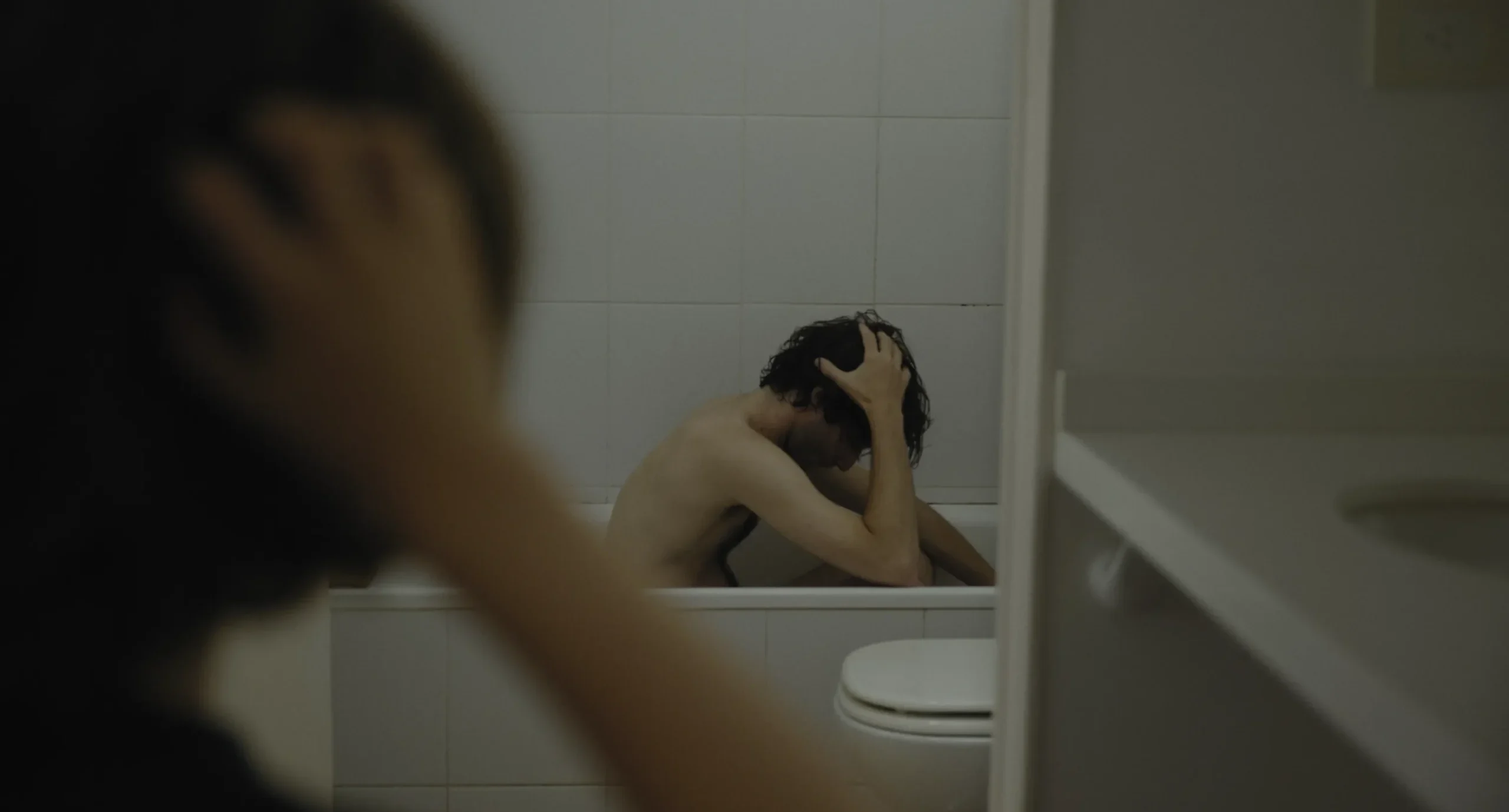 El mundo demasiado estival de la película obliga a dos hombres a lavarse el pelo, el flequillo exactamente, al menos cada dos horas. Uno de esos hombres atraviesa un momento extraño: tiene los ojos atados no sé sabe muy bien a dónde, camina con una lentitud que excede la meditación, y, definitivamente, no se halla. Hay, en su cuerpo, algo que no cuadra del todo. El otro hombre, que reflexiona obsesivamente con los adverbios de modo (lo que recuerda al sueño que tiene María Villar en el carro de Agustina Muñoz en Viola, la película de Matías Piñeiro), no tiene la misma crisis: está tranquilo, hace la vida como puede. En su mundo, también estival, nada se mueve, al menos todavía, fuera de su órbita. El hombre uno, el que quizás intuye que algo muy raro está pasando, el que camina como electrizado, tiene un trabajo: tiene que ir a su oficina, cumplir ciertas obligaciones, etc. El pelo de todos los demás también está húmedo: ¿será agua o será sudor? ¿Cómo reconocer la diferencia? ¿Es, por otro lado, realmente paradisiaco, escrito con el sol, el mundo que nos presenta la película? La película de Renzo Cozza es como su protagonista: registra una normalidad apenas aparente y, de repente, la señal irrefutable de que hay al menos dos o tres piezas que no encajan. Es un estilo que señala, a través del cuerpo de alguien, que las cosas no funcionan. O no funcionan igual. O no funcionan con la soltura que deberían. Por suerte, el abominable afuera que se apodera de todos por igual puede tener un respiro: este hombre, el hombre uno, escribe poemas. Ahora mismo, escribirlos le cuesta mucho. El calor sigue aumentando. El mundo de Cozza, lleno de detalles con el sentido en suspenso, no es que sea a veces extraño y a veces no: su manera de ver a los personajes pasa por descubrir en ellos maneras de hacer las cosas reacias a las leyes de la física. Divertido y dislocado, el nuevo mundo de la película es poético en tanto, al otro lado de la trampilla y el calor, descubre un artefacto más lúcido y perfecto que la cáscara de las cosas.