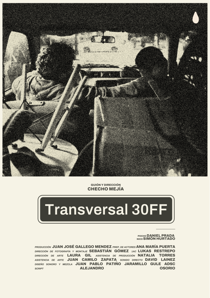 Entre ese tránsito incómodo hacia la juventud adulta, que implica la mudanza en búsqueda de la independencia material mientras se navega la fragilidad de una identidad aún mutable, la búsqueda de una dirección puede ser el detonante preciso para colisionar con las reglas del mundo real. El microcosmos de un carro como escenario, la necesidad de afrontar los cambios con la fachada de tenerlo todo resuelto, la amistad como salvavidas. Transversal 30FF se elabora a partir del lenguaje de la complicidad, ese espacio de vulnerabilidad compartido que, incluso cuando el camino arroja giros equivocados, deviene como único mapa posible. La comicidad se convierte en punto de fuga y resistencia, la poética de fumarse un último porro puede ser el impulso para transitar esa incertidumbre de todo lo que de una u otra forma no podemos controlar.